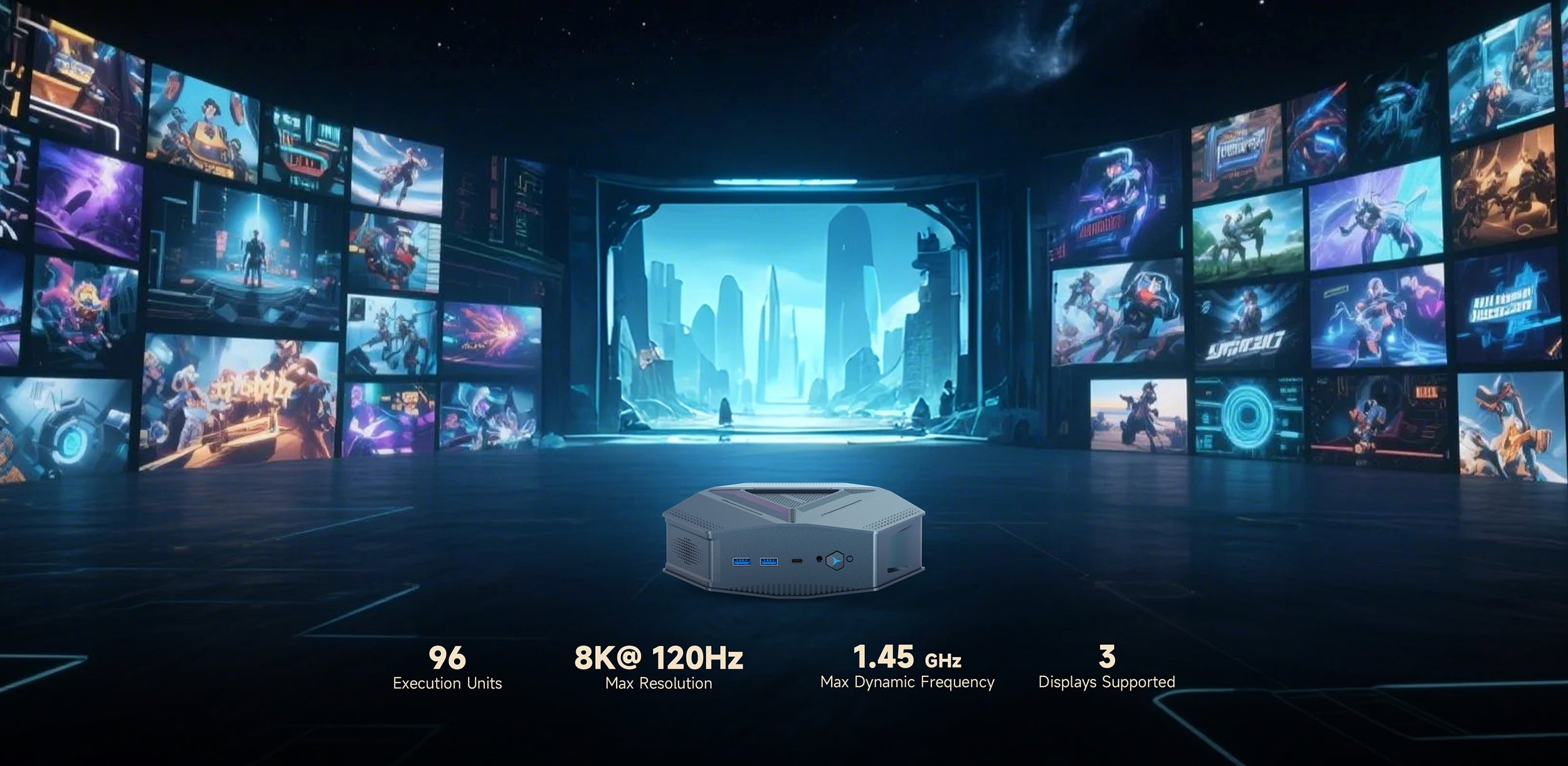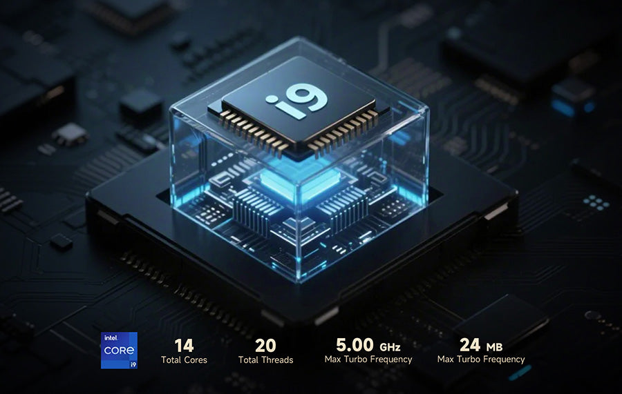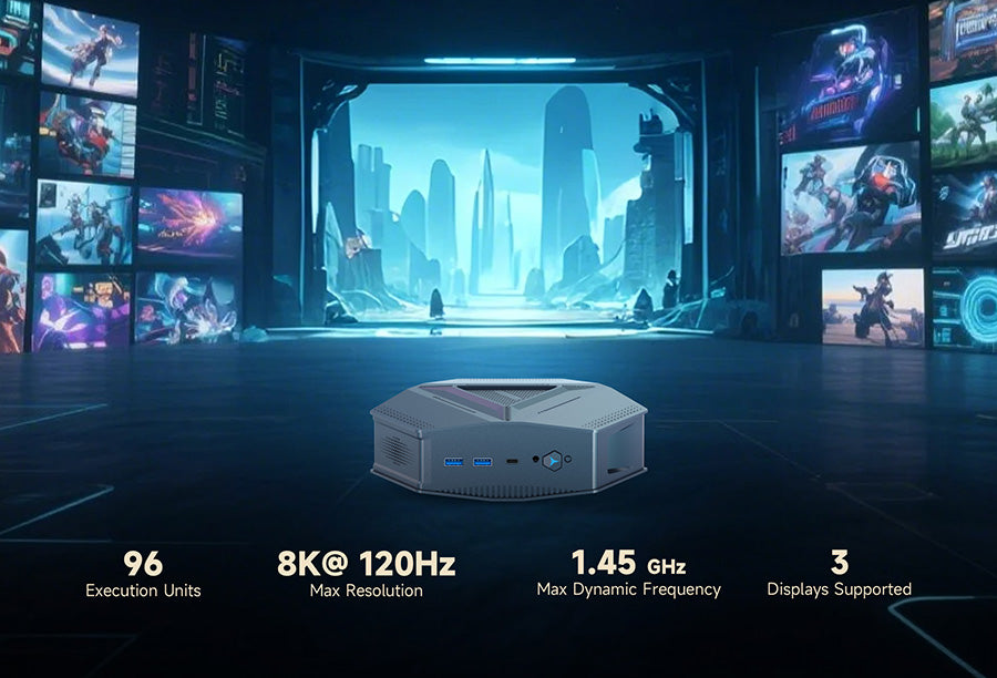 Experience stunning visuals with the GH9 Mini PC, featuring Intel® Iris® Xe Graphics with up to 1.45 GHz dynamic frequency. Enjoy ultra-high resolutions up to 8K via DisplayPort and 4K at 120Hz on integrated panels. Thunderbolt™ 4 support enables external GPUs, delivering smooth gaming, content creation, and professional graphics performance.