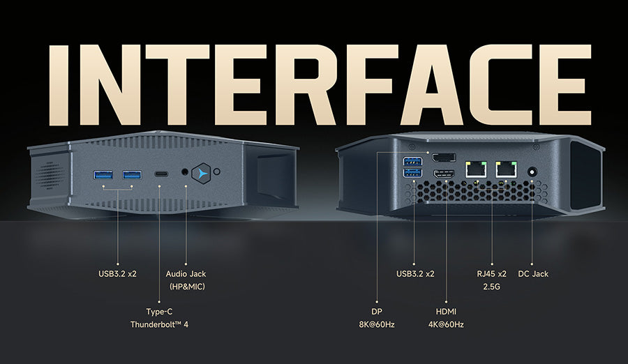 Expand your workspace with the GH9 Mini PC, supporting triple monitor setups. Connect HDMI (4K@60Hz), DisplayPort (8K@60Hz), and Thunderbolt™ 4 (4K@120Hz) simultaneously for seamless multitasking, gaming, and content creation. Maximize productivity, enjoy immersive visuals, and transform your desk into a high-performance, multi-screen workstation.